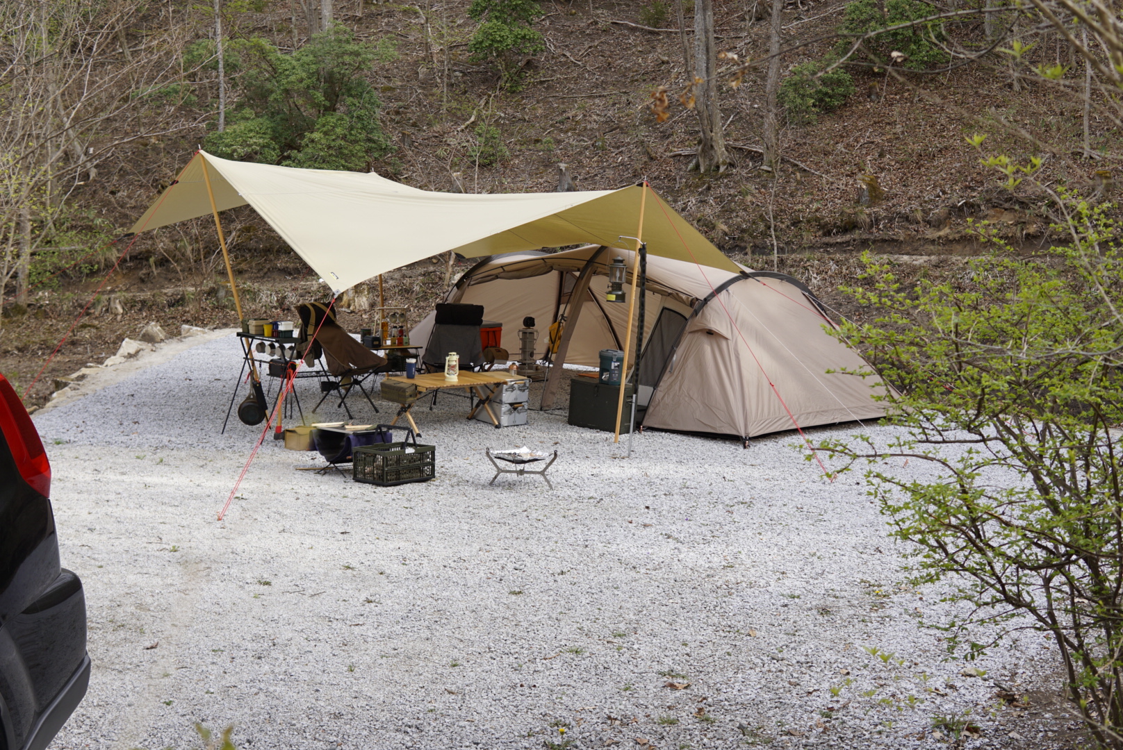 サイト2つ、タープ1つが余裕で張れるサイトです。(約130㎡)